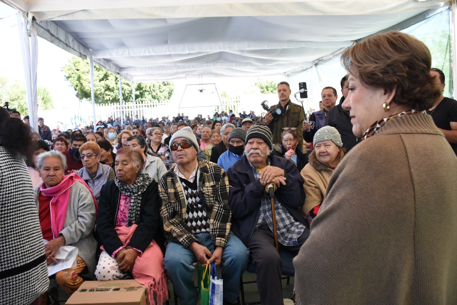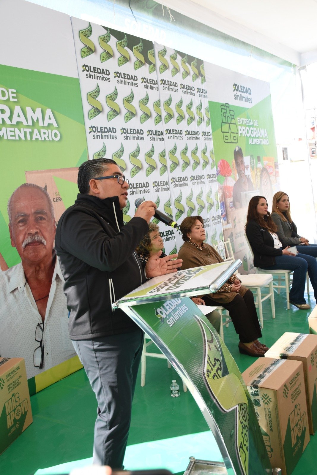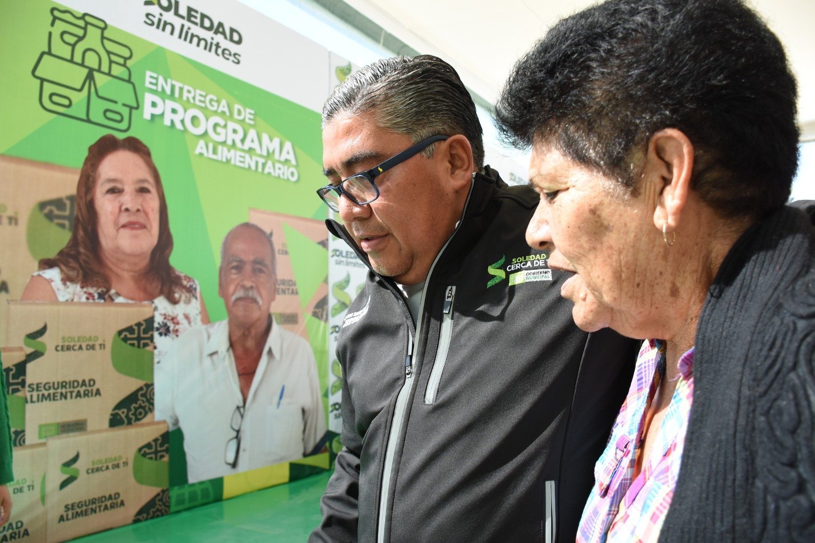 Entrega Programa Alimentario, Alcalde Juan Manuel Navarro y, presidenta del DIF Sra Pilar Cardona, en plaza Primero de Mayo de la colonia “Fidel Velázquez”.