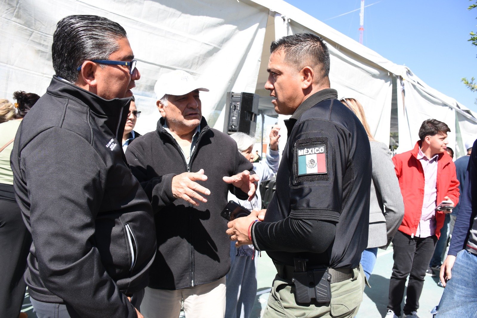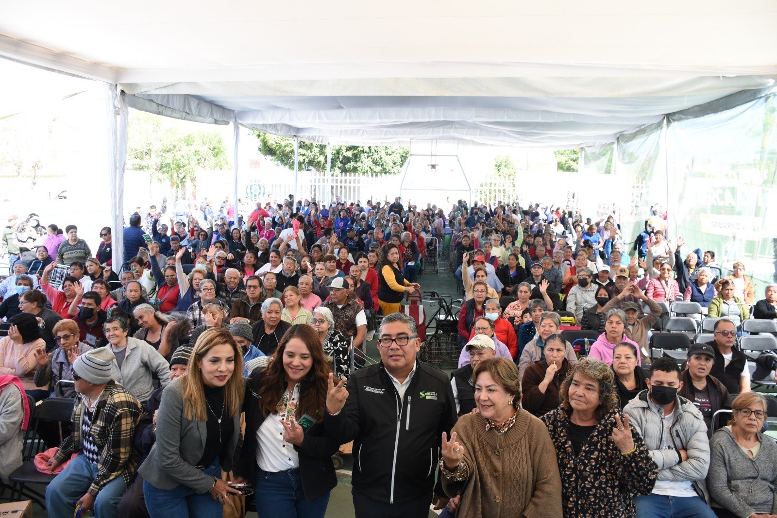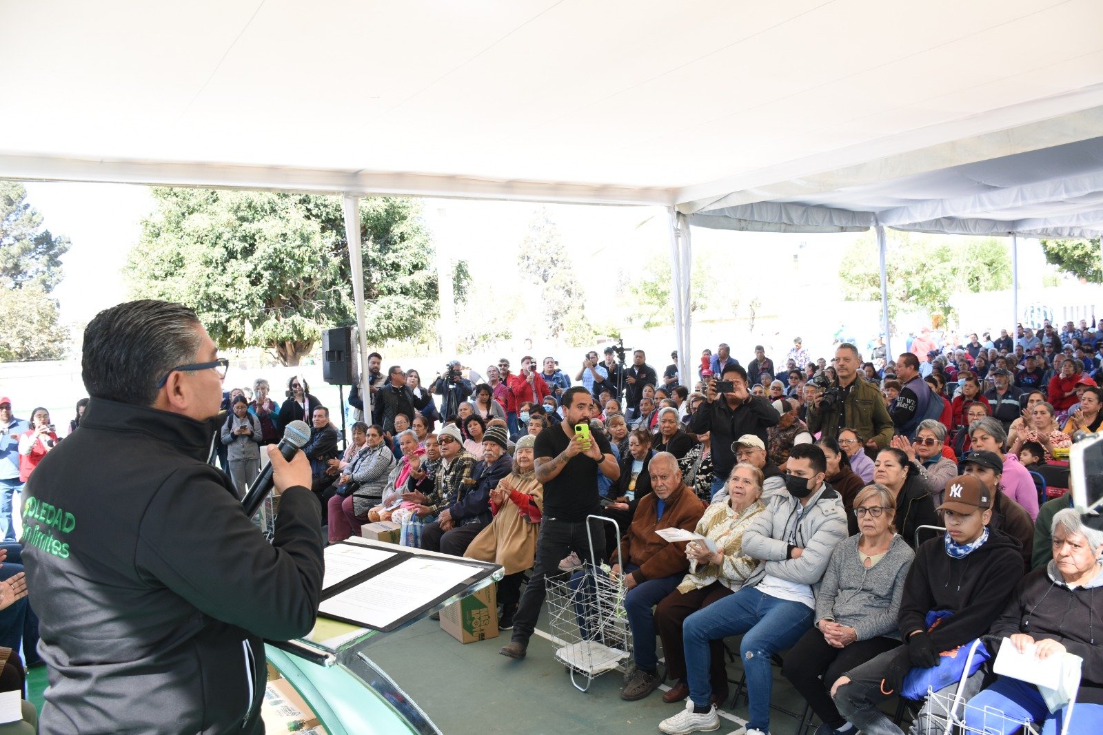 Entrega Programa Alimentario, Alcalde Juan Manuel Navarro y, presidenta del DIF Sra Pilar Cardona, en plaza Primero de Mayo de la colonia “Fidel Velázquez”.